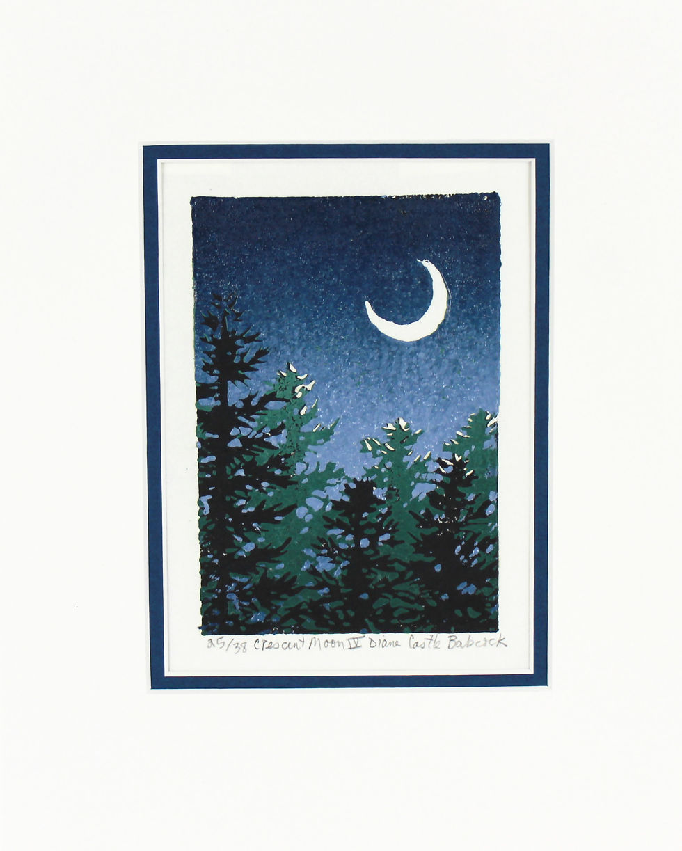 I offer a variety of notecards featuring my Adirondack landscape prints of New York and my very popular moonlight linocuts. My linoleum block print notecards are perfect for sending a greeting to a loved one, or framing them for your own enjoyment.